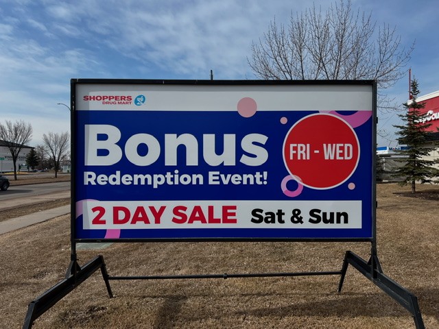 Sign Guru portable signs & mobile sign rentals offers an array of road side signs for the Alberta sign rental market. Our digitally printed mini billboards are professionally designed by our in house graphic artists in as little as 24 hours. Sign rentals Alberta will print & deliver your sign or change it in as little as 24 hours. Our street signs are the most cost effective way to advertise with rates starting at $3 per day plus city permits. We use the latest print technology to deliver the highest quality printed graphics on the market today combined with the best rigid substrate for displaying the image helps create stunning advertisements for our clients. Edmonton road sign rentals. Changeable letter signs and marquee sign advertising